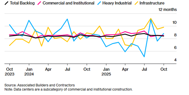 With data center infrastructure spending ramping up, it’s no surprise that the data center construction backlog has expanded at a rapid clip. According to the Associated Builders and Contractors trade association, the data center construction project backlog reached 11 months in October 2025.