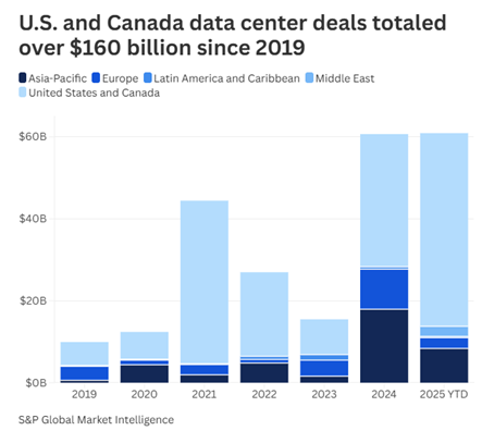 S&P Global Market Intelligence also notes that the massive data center buildout in North America is eclipsing data center growth in other corners of the globe.